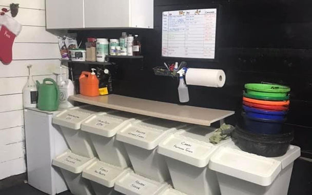 Our large tack and feed room is heated with individual lockers available to each boarder. Extra storage available.